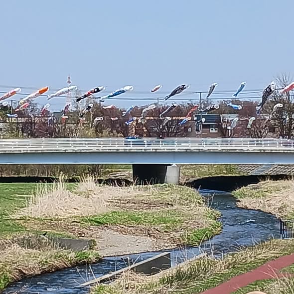 2026.04.20 清田 ウィステリア清田 厚別川に鯉のぼり🎏 ダイニングホールウィステリア清田🎤😆♬からです! 凄く良い天気ですね! ウィステリア清田近くの厚別川に鯉のぼりが現れました。🎏 今日は快晴ですが凄く風が強いです。今月もランチイベント企画して皆さんのお越しをお待ちしておりま~す✨ #サービス付き高齢者向け住宅 #ウィステリア清田 #清田ランチ #清田食事 #日替わりランチ